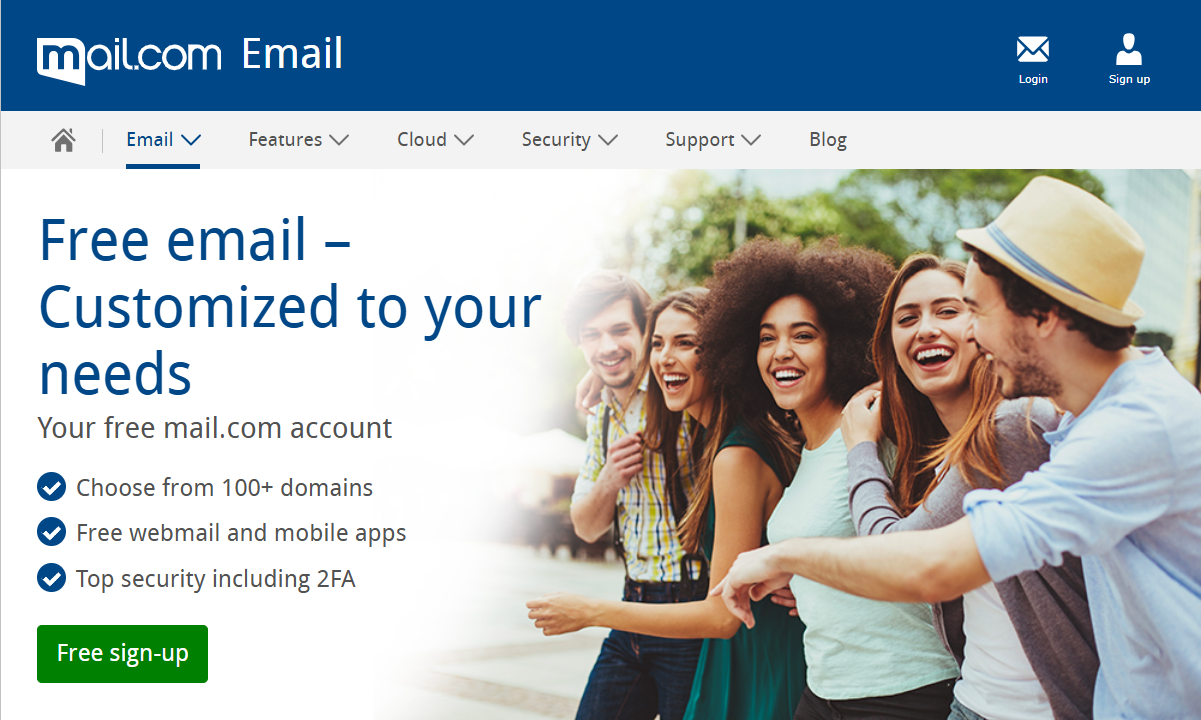 La gran ventaja de Mail.com es su amplia selección de más de 200 dominios diferentes entre los que puedes elegir. A diferencia de la mayoría de los proveedores de email gratis, que suelen usar el nombre de la marca en la segunda parte de la cuenta, Mail.com permite seleccionar entre distintos nombres de dominio. Algunos de estos dominios están relacionados con sectores profesionales, lo que hace que las direcciones de Mail.com sean adecuadas para el ámbito laboral.