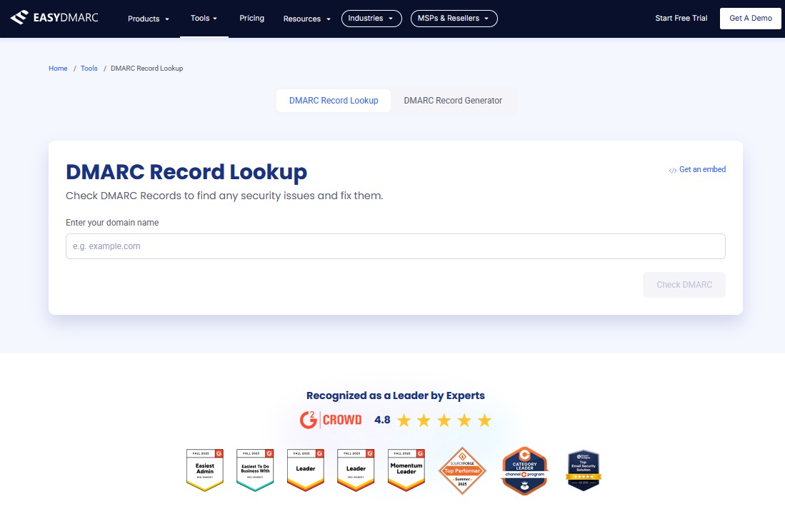 Dependiendo del proveedor de DNS, la publicación del registro DMARC puede tardar desde unos minutos hasta varias horas. Para comprobar que se ha configurado correctamente, puedes usar alguna de las muchas herramientas de comprobación de DMARC disponibles en Internet, como la herramienta DMARC Record Lookup de EasyDMARC.