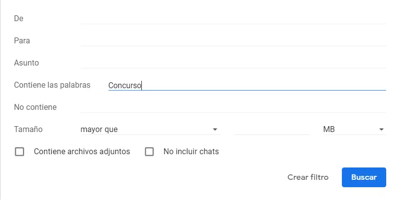 - En cambio, “No contiene” excluye todos los correos que no utilizan esas palabras especificadas.