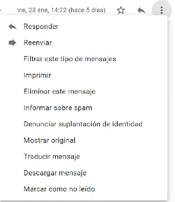 2. Después de abrir el menú, selecciona la opción del medio “Informar sobre spam”.