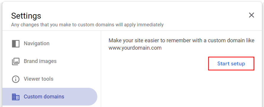 Aparecerá una nueva ventana de diálogo con las instrucciones finales para configurar tu dominio en Google Sites. Mantén la ventana abierta mientras sigues los pasos que aparecen a continuación: