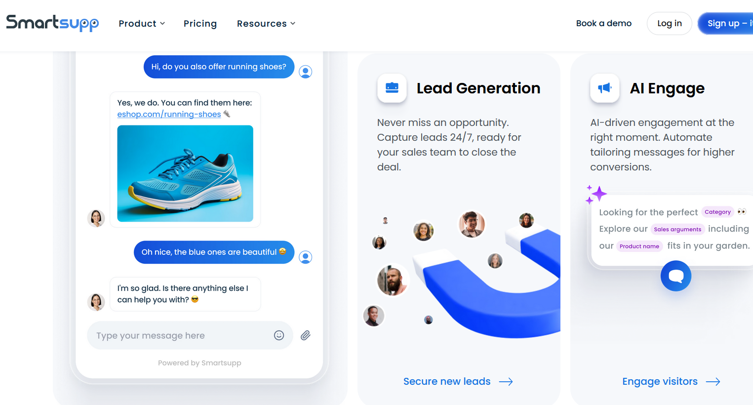 Para facilitar la interacción con los usuarios de tu página, el plugin de WordPress Smartsupp aprovecha, entre otros, los beneficios de la inteligencia artificial. Los asistentes de ventas y atención al cliente basados en IA permiten automatizar la atención al cliente en línea y ofrecerla las 24 horas del día. Además, cuenta con la función AI Engage, que muestra automáticamente mensajes personalizados en el navegador de los usuarios cuando se han recopilado suficientes datos relevantes para recomendar productos o servicios específicos. Aunque los datos se almacenan en servidores de la UE bajo el RGPD, los usuarios en EE. UU. deben garantizar el cumplimiento con las leyes de privacidad locales mediante ajustes en avisos y configuraciones de consentimiento. Además, la comunicación en el chat está cifrada con AES de 256 bits.