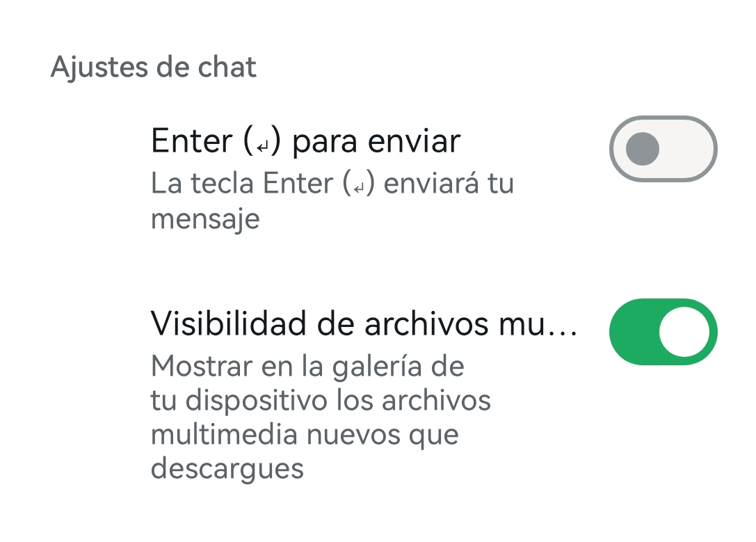 Paso 2. Activa la opción “Visibilidad de los archivos multimedia”. Si se activa, las fotos de WhatsApp se guardan automáticamente en “Imágenes de WhatsApp” en tu aplicación “Galería”.