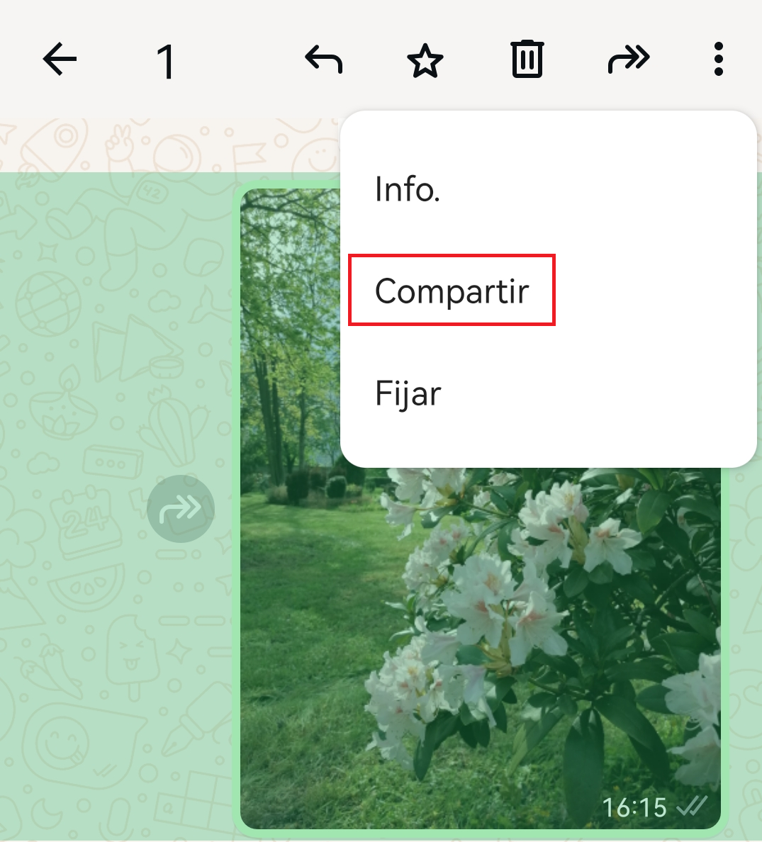 Paso 1. Cuando quieras guardar una foto seleccionada de WhatsApp en tu dispositivo, simplemente pulsa sobre ella.