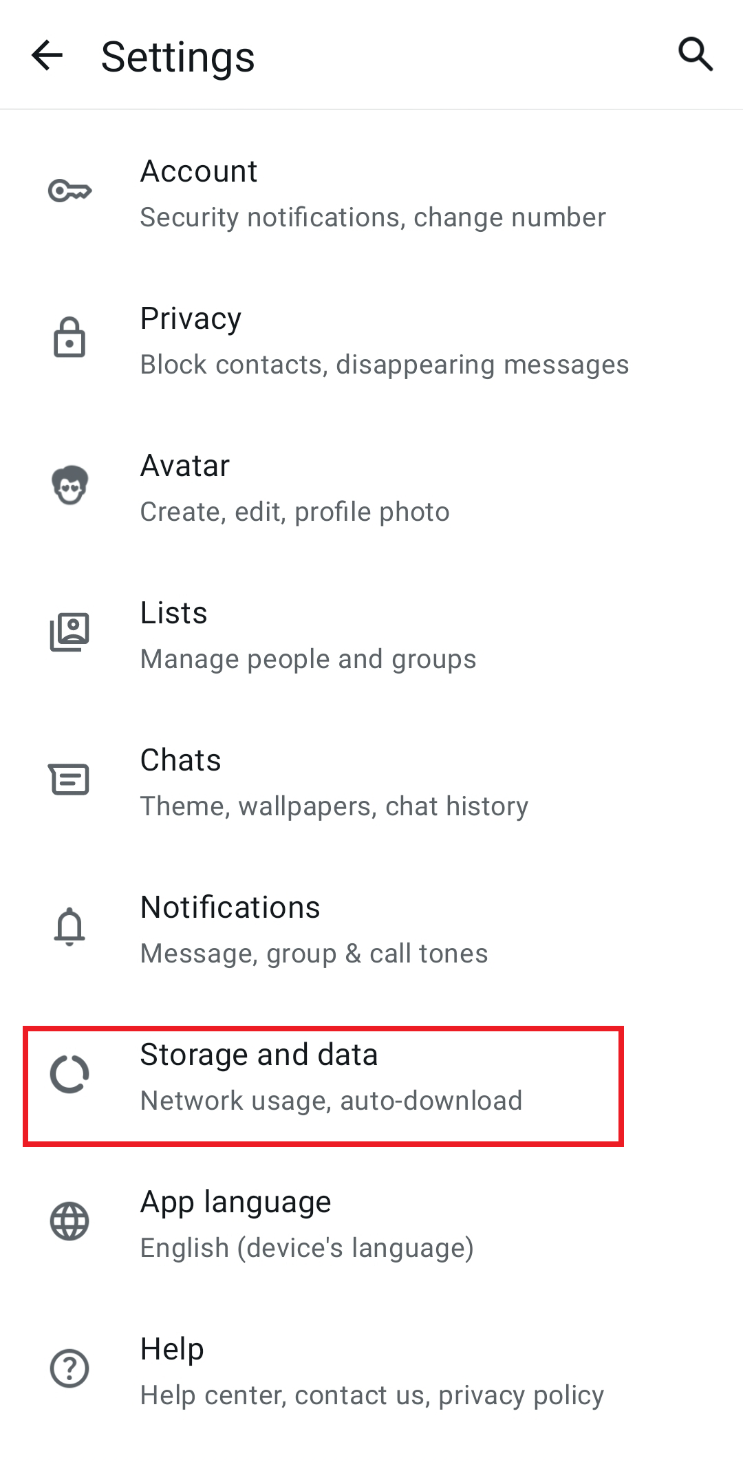 - Allí encontrarás la opción “Almacenamiento y datos” (Storage and data). Haz clic en ella.