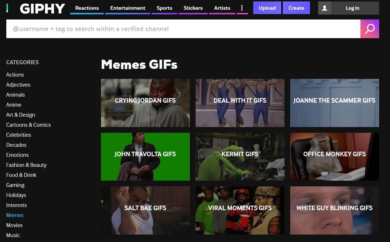 En comparación con los thumbnails de vídeo, las imágenes en miniatura para animaciones GIF son mucho más simples. Dado que los GIFs son solo bucles cortos de vídeo, normalmente se omiten el texto y otros elementos de diseño, exceptuando las vistas previas que conducen a una subcategoría y que se etiquetan en consecuencia. En principio, estas imágenes (fijas) funcionan como miniaturas inmóviles: se refieren a los archivos originales y proporcionan una orientación rápida.