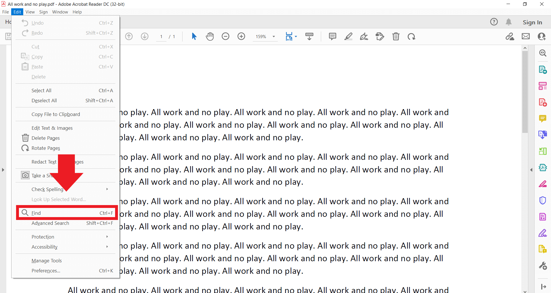 Para llevar a cabo una búsqueda sencilla en Adobe Reader, haz lo siguiente: