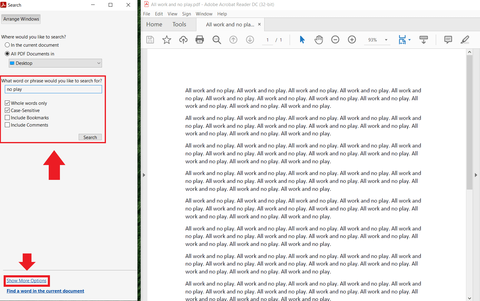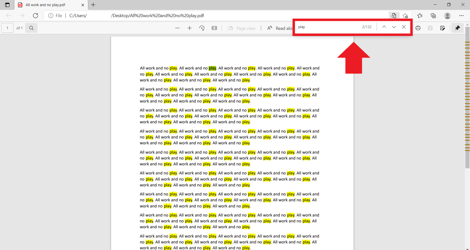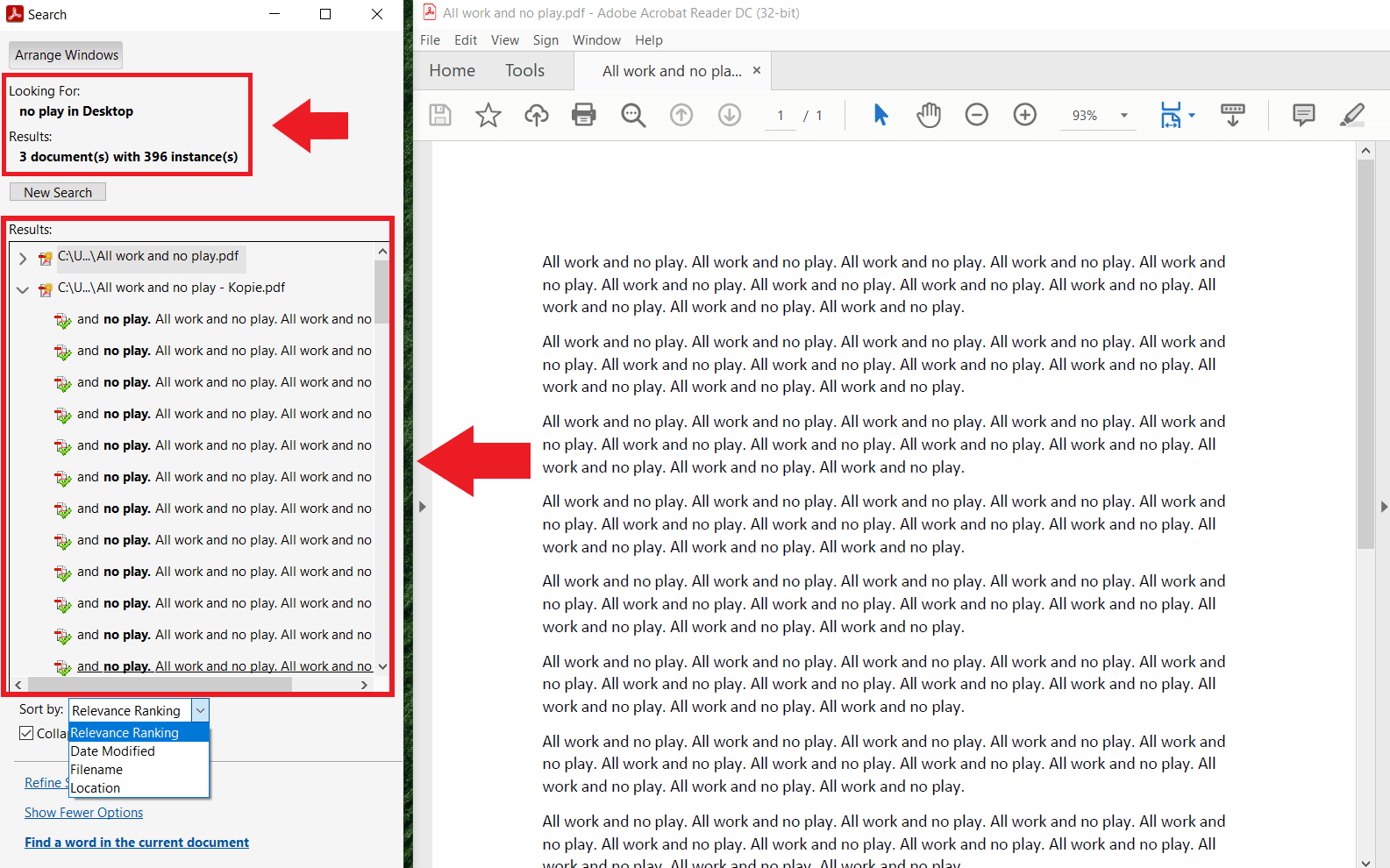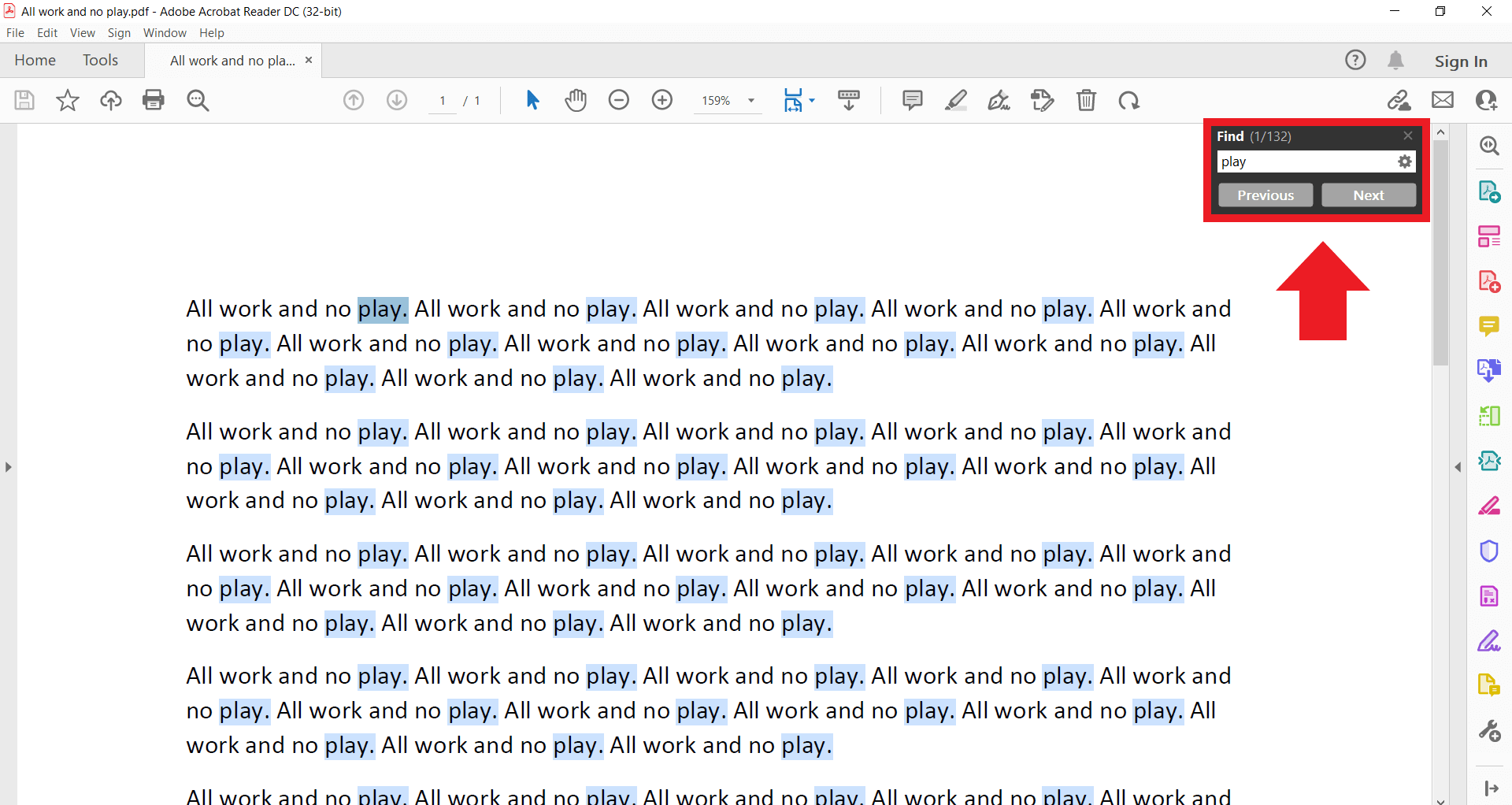 - Adobe Acrobat Reader te mostrará los fragmentos de texto encontrados marcados.