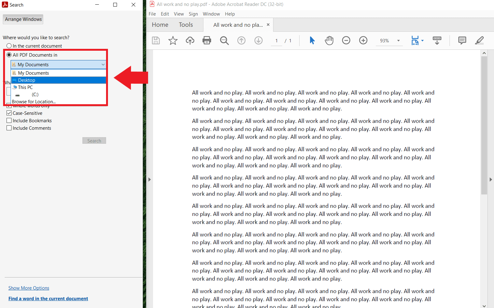 Guía rápida: búsqueda en el Adobe Acrobat Reader DC