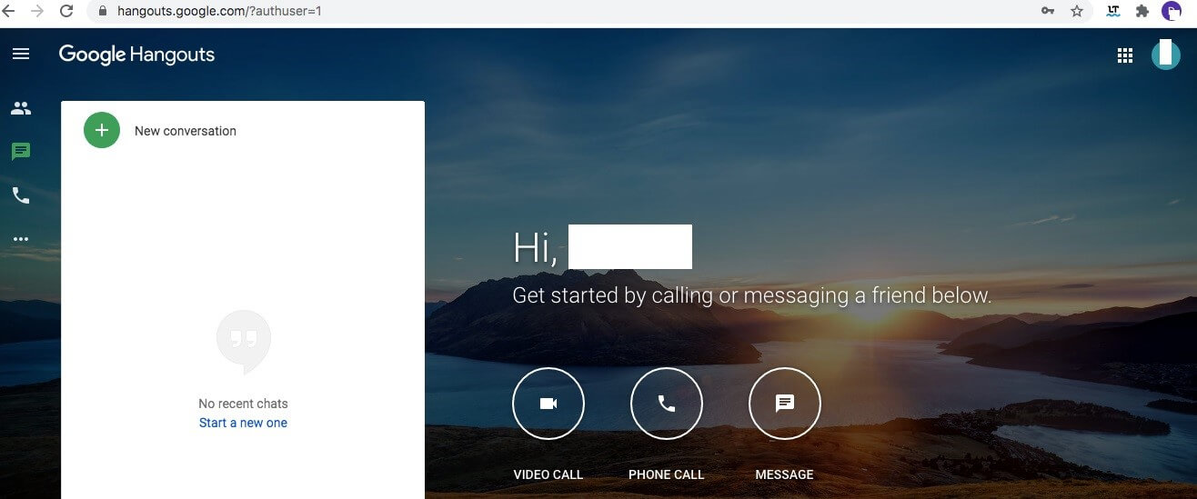 - Navega hacia abajo y busca el símbolo de Google Hangouts. A continuación, Google Hangouts se abrirá en una pestaña nueva de tu navegador.