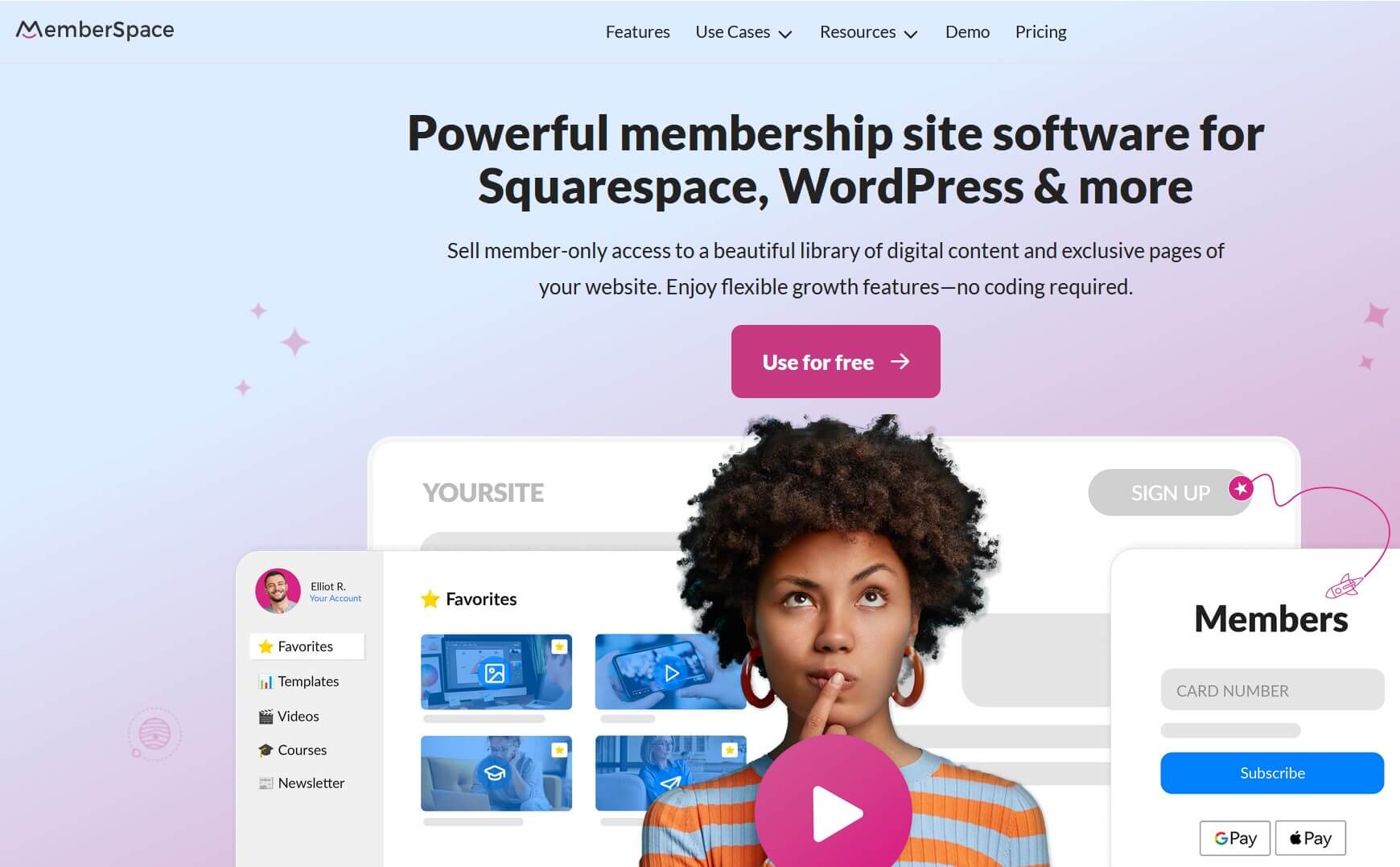 MemberSpace, lanzada en 2015, te permite restringir el acceso a páginas concretas de tu web. Incluye funciones como foros, podcasts y programas de afiliación. Además, su herramienta de análisis te ayuda a controlar métricas clave, mientras que el cifrado SSL a nivel bancario garantiza la seguridad de los datos.