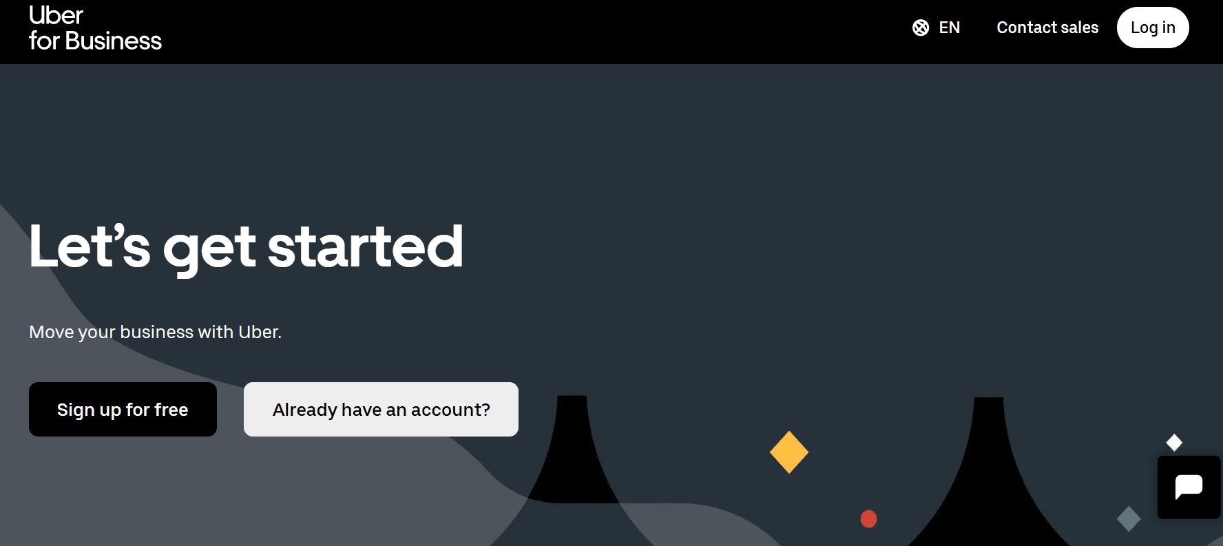 La página de registro de Uber for Business destaca por su claridad, enfoque y facilidad de uso. Comienza con un titular y subtítulo directos que explican de inmediato el servicio, seguidos de un call to action claro —“Sign up for free” (Regístrate gratis)— que reduce las barreras de entrada. La página resalta ventajas adaptadas al público empresarial, como el ahorro de tiempo en la gestión de gastos, la coordinación de trayectos y pagos desde una única cuenta, o el aumento del compromiso con los clientes mediante vales. El diseño es simple y sin elementos innecesarios, centrando toda la atención en la conversión, mientras que los elementos de confianza —como los enlaces legales, las políticas de privacidad y las opciones de idioma— refuerzan la credibilidad y la accesibilidad. En conjunto, la página aborda eficazmente los puntos débiles de las empresas y guía al visitante hacia la acción deseada sin distracciones.