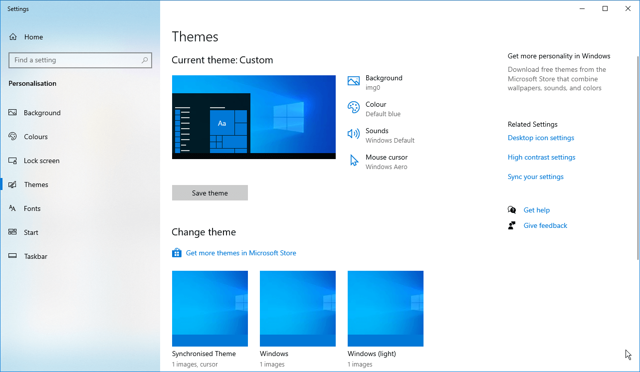 - A continuación, en el lado derecho de la ventana encontrarás un enlace a la “Configuración de iconos de escritorio”. Haz clic sobre ese enlace para establecer qué iconos de Windows deben mostrarse de forma estándar en tu escritorio.