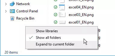 En el espacio vacío que encontrarás debajo de todos los iconos de la zona de navegación, haz clic con el botón derecho del ratón y selecciona la opción “Mostrar todas las carpetas” del menú contextual. Una vez hecho eso, se mostrará tanto la papelera de reciclaje como el panel de control en la zona de navegación del explorador.