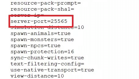 Los jugadores que se conecten en la red local o Internet deben tener acceso al servidor de Minecraft a través de un puerto abierto. Por defecto, Minecraft proporciona para ello el puerto TCP 25565. Para verificarlo o asignar un puerto diferente, debes abrir el archivo server.properties con un editor de texto (por ejemplo, WordPad) y comprobar o cambiar el número que aparece en server-port=….