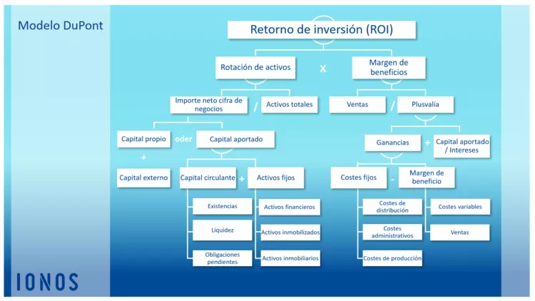 Como índice estrella del sistema DuPont, el retorno de inversión (ROI) abarca por una parte la rentabilidad sobre el capital propio (Return on Equity – ROE), y por otra la rentabilidad del capital invertido en activos fijos (Return on Assets – ROA), que se componen de capital propio y ajeno.