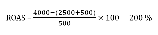 En nuestro ejemplo tenemos como resultado un ROAS de 200 %.