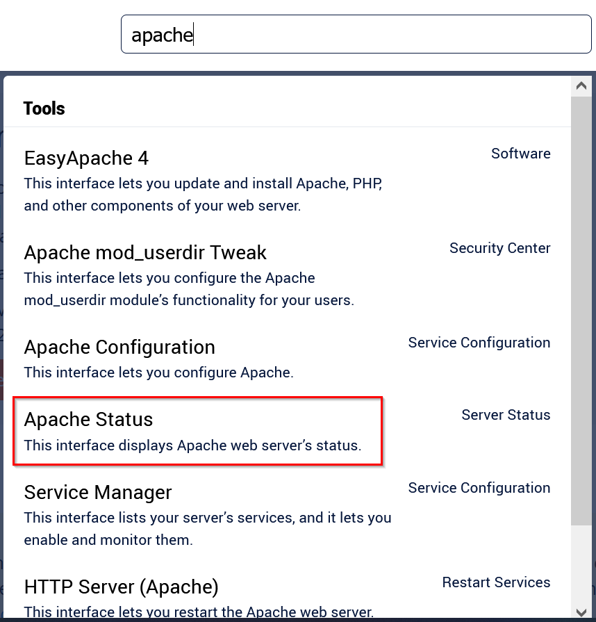 cPanel’is saate oma Apache versiooni vaadata jaotises**„Serveri teave**”.
