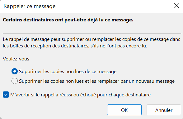 Rappeler un message avec Outlook