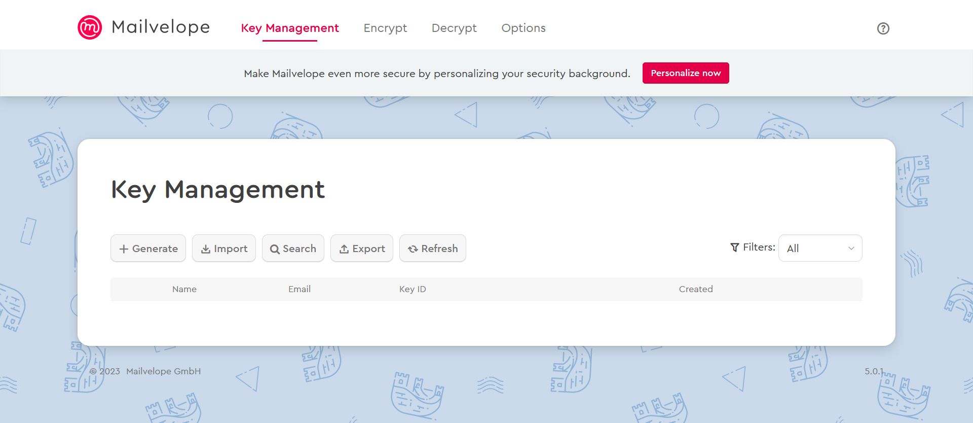 Pour ceux qui privilégient les services email tels que Gmail, Yahoo ou Outlook.com, l’extension de navigateur Mailvelope est un choix adapté. Ce plugin se base sur OpenPGP.js et est disponible aussi bien sur Google Chrome que sur Mozilla Firefox. Sur la page d’accueil du site Web, vous trouverez les liens nécessaires au téléchargement de l’extension. Une fois Mailvelope installé, l’icône de l’extension s’affichera dans la barre du navigateur. C’est dans cet espace que vous pourrez importer, gérer les clés publiques et privées de vos destinataires ainsi que de télécharger les clés publiques qui ont été générées.