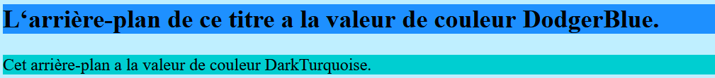 <h2>L’arrière-plan de ce titre a la valeur de couleur DodgerBlue.</h2>