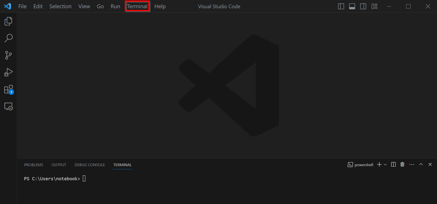 VS Code contient un terminal intégré que vous pouvez utiliser pour exécuter des commandes PowerShell (en anglais run PowerShell Script) directement dans l’environnement. Ouvrez le terminal en cliquant sur « Terminal » > « New Terminal » et sélectionnez « PowerShell » comme type de terminal.