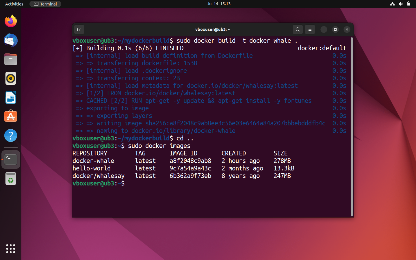 Vous trouverez l’image que vous venez de créer sous le nom docker-whale dans l’aperçu de vos images enregistrées localement.