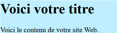 <body style="background-color: valeur;">htmlDans l’exemple suivant, nous utilisons un code couleur hexadécimal pour définir un bleu clair comme couleur d’arrière-plan :