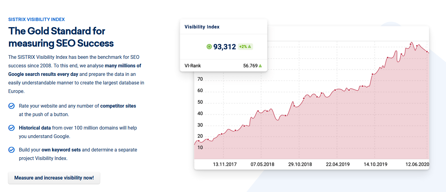 Avec son offre assez large, Sistrix s’adresse plutôt aux professionnels du SEO, c’est pourquoi les prix sont relativement élevés. Tout comme les autres fournisseurs, on trouve chez Sistrix de nombreuses informations qui permettent de se familiariser avec l’optimisation pour les moteurs de recherche.