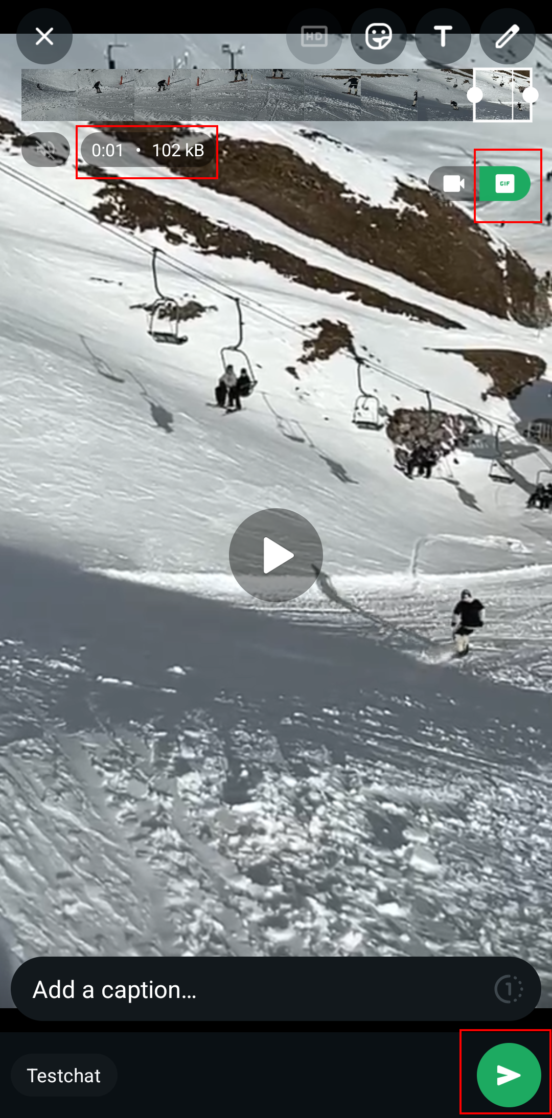 „WhatsApp“ pokalbyje pasirinkite pliuso piktogramą ir parinktį „Nuotraukų ir vaizdo įrašų biblioteka“. Pasirinkus vaizdo įrašą, iš kurio norite sukurti GIF, atsivers redagavimo langas. Dabar sutrumpinkite vaizdo įrašą iki ne daugiau kaip šešių sekundžių. Tada pasirodys mygtukas „GIF“, kurį reikia paspausti. Dabar jūsų GIF failą galima siųsti. Svarbus patarimas: jei pažymėsite savo GIF failą žvaigždute (kaip parodyta ankstesniame triuke), jis bus išsaugotas jūsų GIF apžvalgoje.
