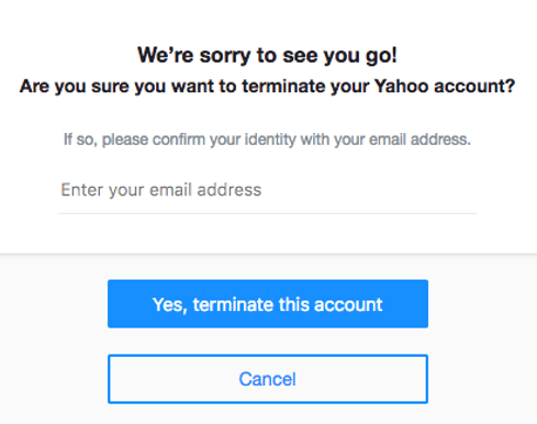 - Įveskite savo „Yahoo“ el. pašto adresą ir spustelėkite „Taip, uždaryti šią paskyrą“, kad patvirtintumėte.