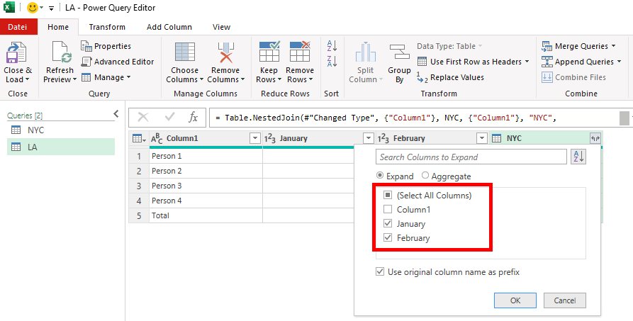 Kā apvienot datus programmā Excel, izmantojot Power Query redaktoru