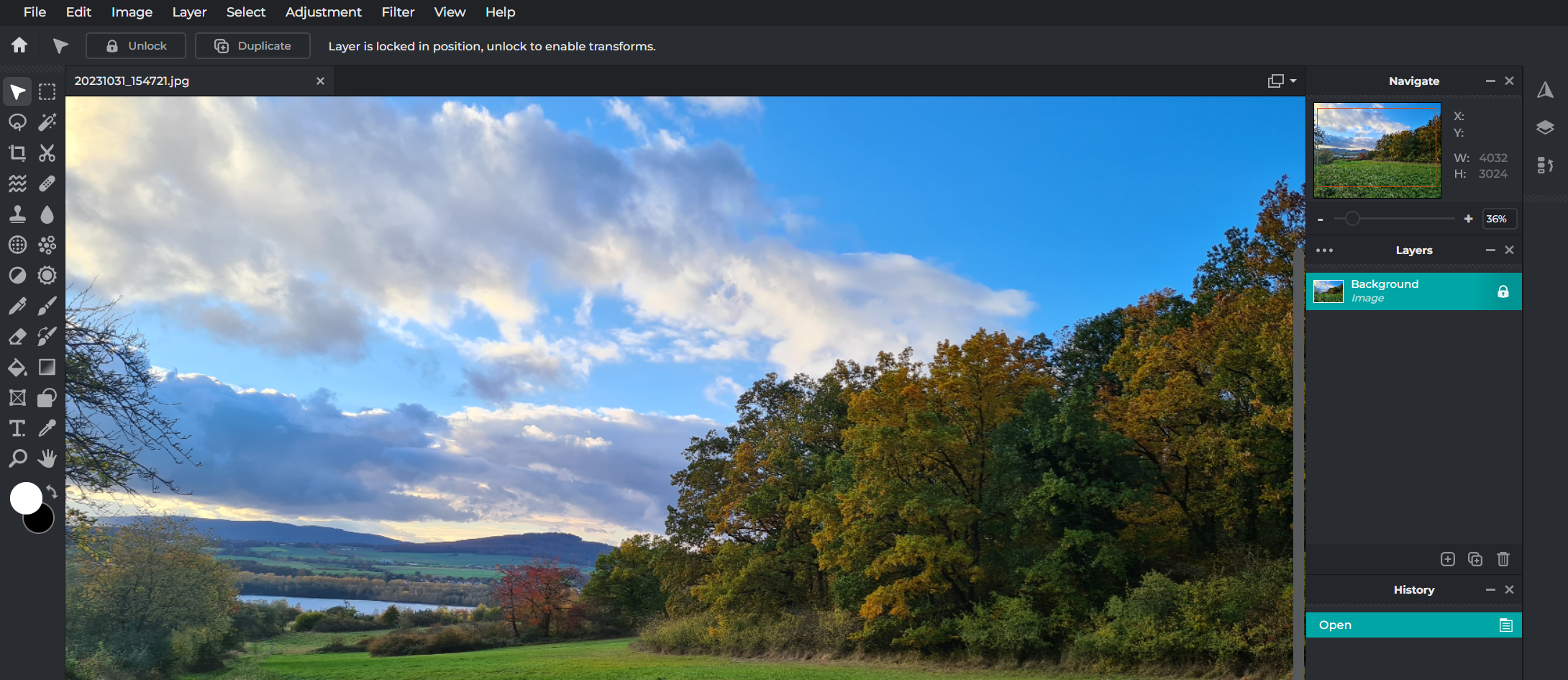 Pixlr Editor er det beste beviset på at selv gratis fotoredigeringsprogrammer på nettet kan måle seg med de etablerte, betalte versjonene. Den visuelle fremstillingen og standardredigeringskontrollene gjør det lett å glemme at det er en nettleserapp – spesielt når man bruker fullskjermmodus. De klare, intuitive og visuelt tiltalende menylinjene og boksene er lett gjenkjennelige fra sammenlignbare programmer, slik at både erfarne brukere og nybegynnere raskt vil føle seg komfortable med å bruke programmet. Bildredigeringsprogrammet tilbyr følgende funksjoner for tilpasning av bilder: