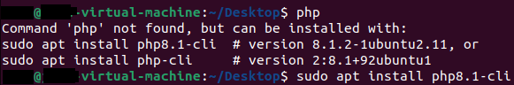 phpbashHvis det vises en feilmelding, kan du installere kommandolinjeverktøyet for PHP 8 med følgende kommando: