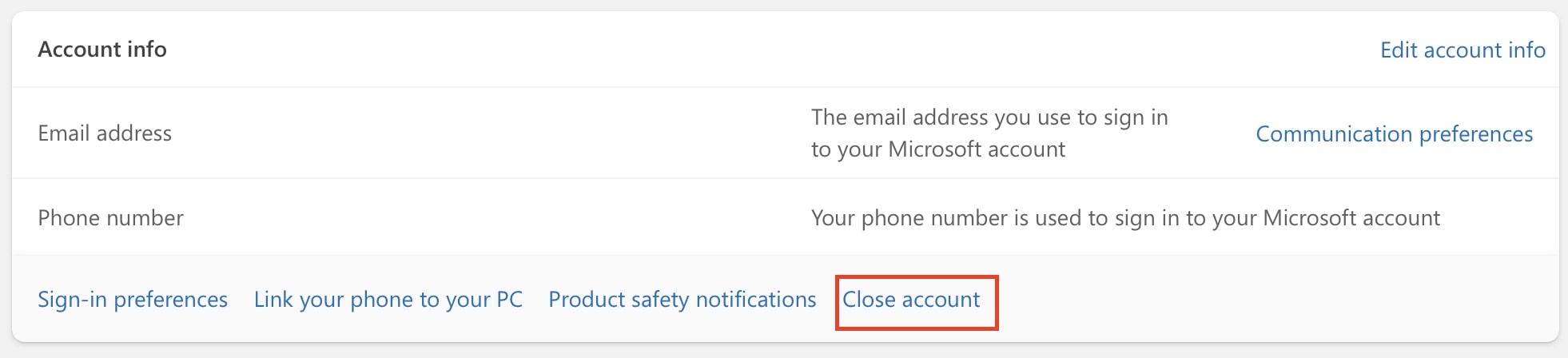 - Open het artikel ‘Uw Microsoft-account sluiten’ en klik op ‘Account sluiten’.