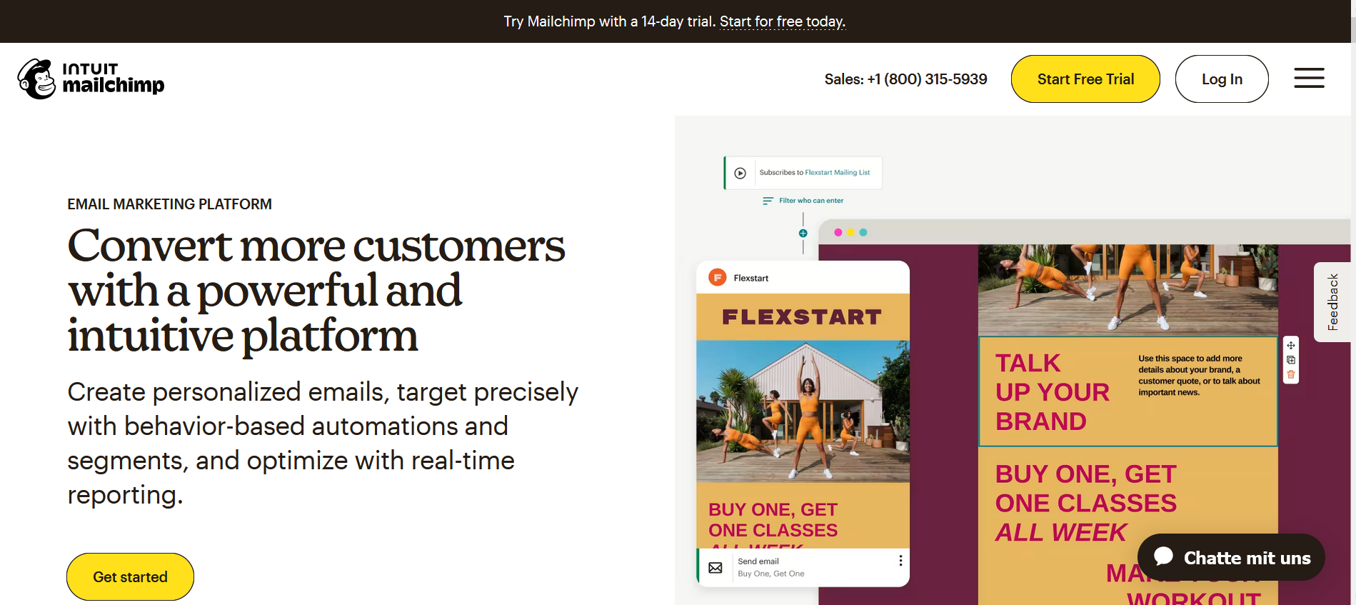 O Mailchimp é um software de e-mail marketing fácil de usar, que oferece uma interface intuitiva e um editor drag-and-drop para a criação de modelos de newsletter. O software permite a integração com vários sistemas CRM, incluindo Salesforce, Zoho CRM e Microsoft Dynamics CRM, além de mais de 300 outros aplicativos e serviços on-line, como Shopify, WordPress e Canva. Funções de análise avançada oferecem insights detalhados sobre o desempenho de suas campanhas. O armazenamento de dados é feito em servidores americanos, o que deve ser considerado em relação à segurança dos dados.