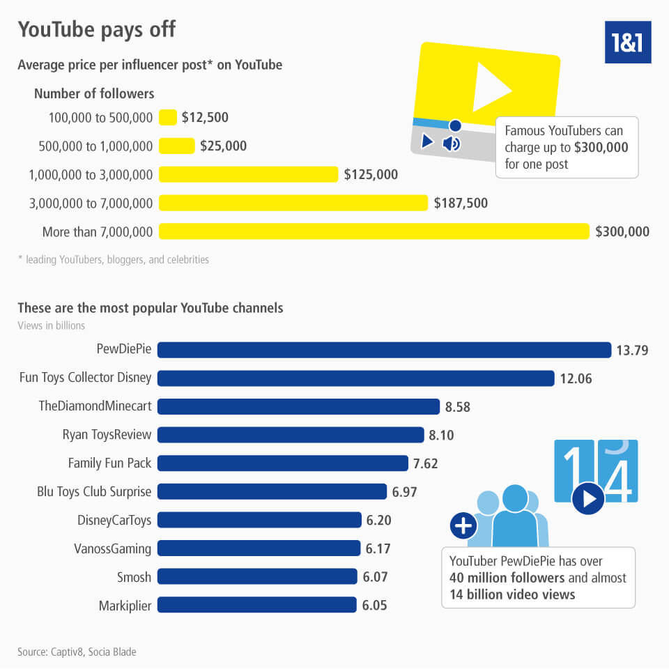 Como você já percebeu, existem diversas formas de se ganhar dinheiro no YouTube, mas cada uma delas está sujeita a algumas condições. Anúncios só geram renda quando são visualizados por mais de 30 segundos ou até o fim, cooperações com anunciantes só são viáveis a partir de uma determinada quantidade de inscritos, e a venda de artigos promocionais requer que as pessoas estejam dispostas a pagar pelos produtos. Assim, apostar nesses métodos não significa, necessariamente, dinheiro no bolso. Todavia, uma coisa é indiscutível: alguns youtubers constroem impérios trabalhando exclusivamente pelo YouTube.