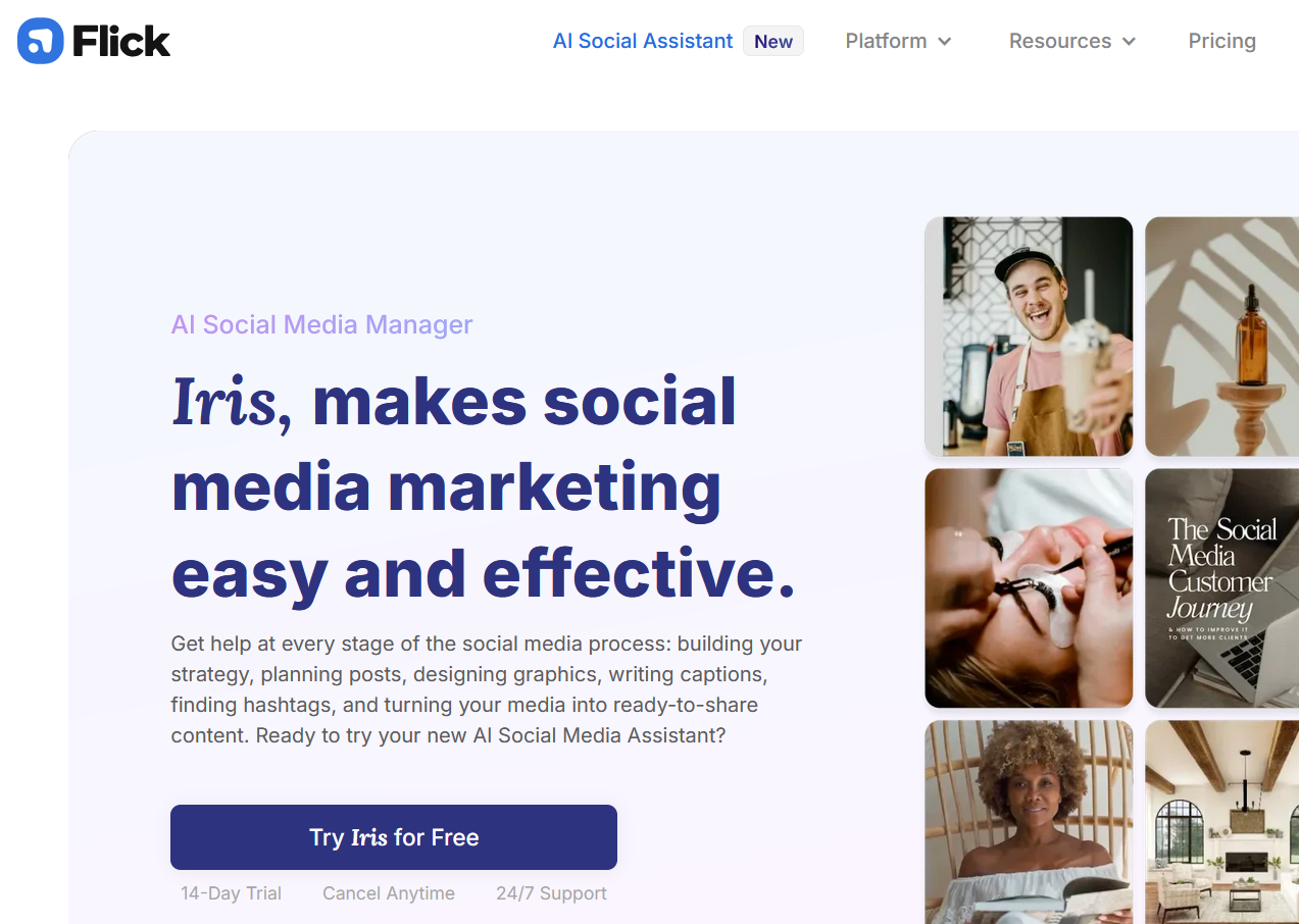| Flick | Gerenciador de IA para redes sociais | a partir de € 11 |
