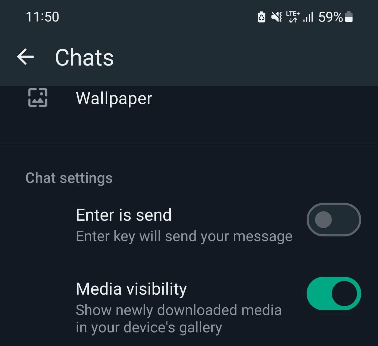 Passo 2: Verifique a opção “Visibilidade de mídia”. Se ela estiver ativada, as imagens recebidas no WhatsApp serão salvas automaticamente na pasta “Imagens do WhatsApp” no aplicativo “Galeria”.