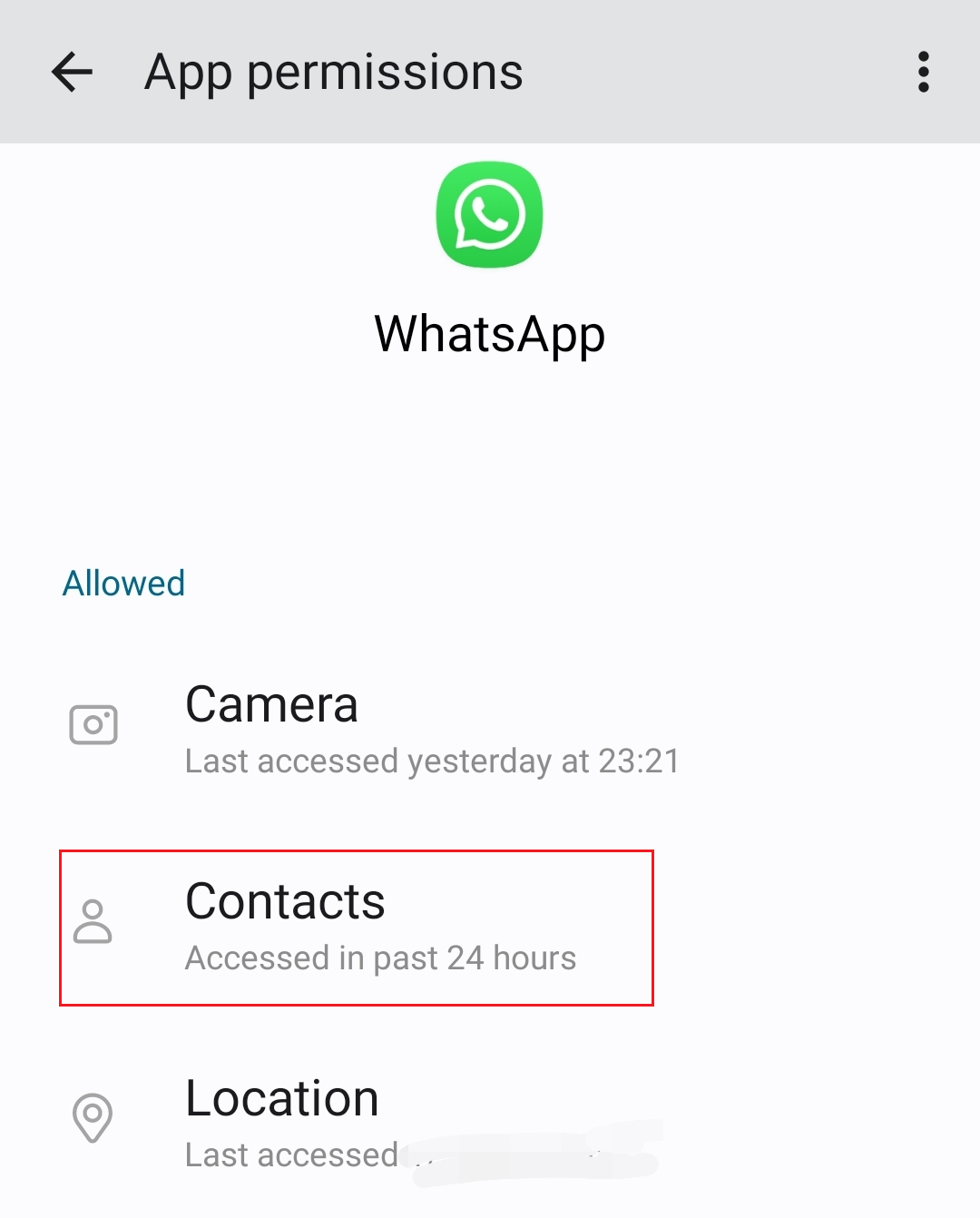 - Vá para “Contatos” e defina a permissão como “Permitir”.