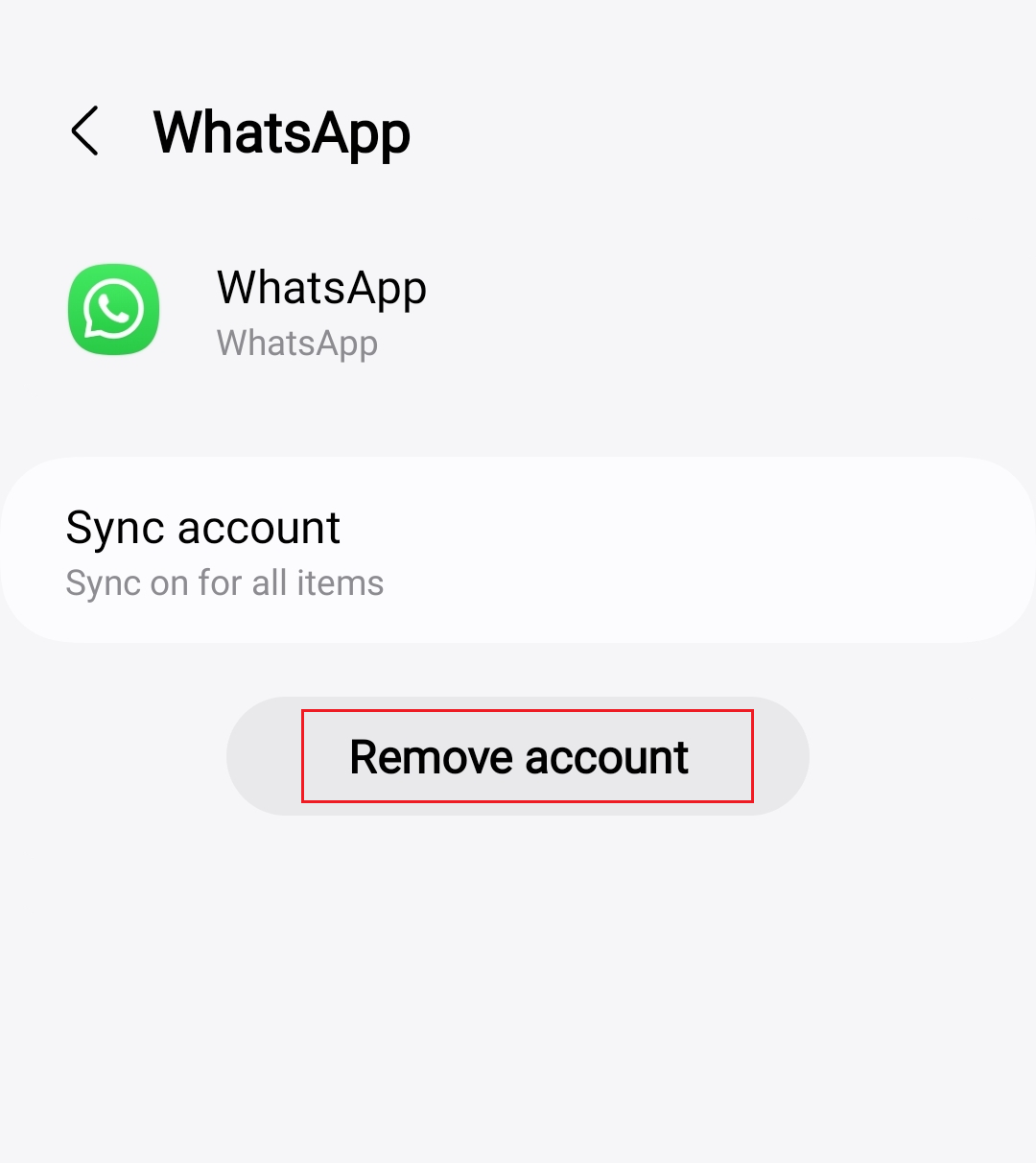 Caso os seus contatos ainda não tenham reaparecido ou o seu WhatsApp não esteja funcionando corretamente, remova sua conta do WhatsApp da seção de contas do dispositivo.