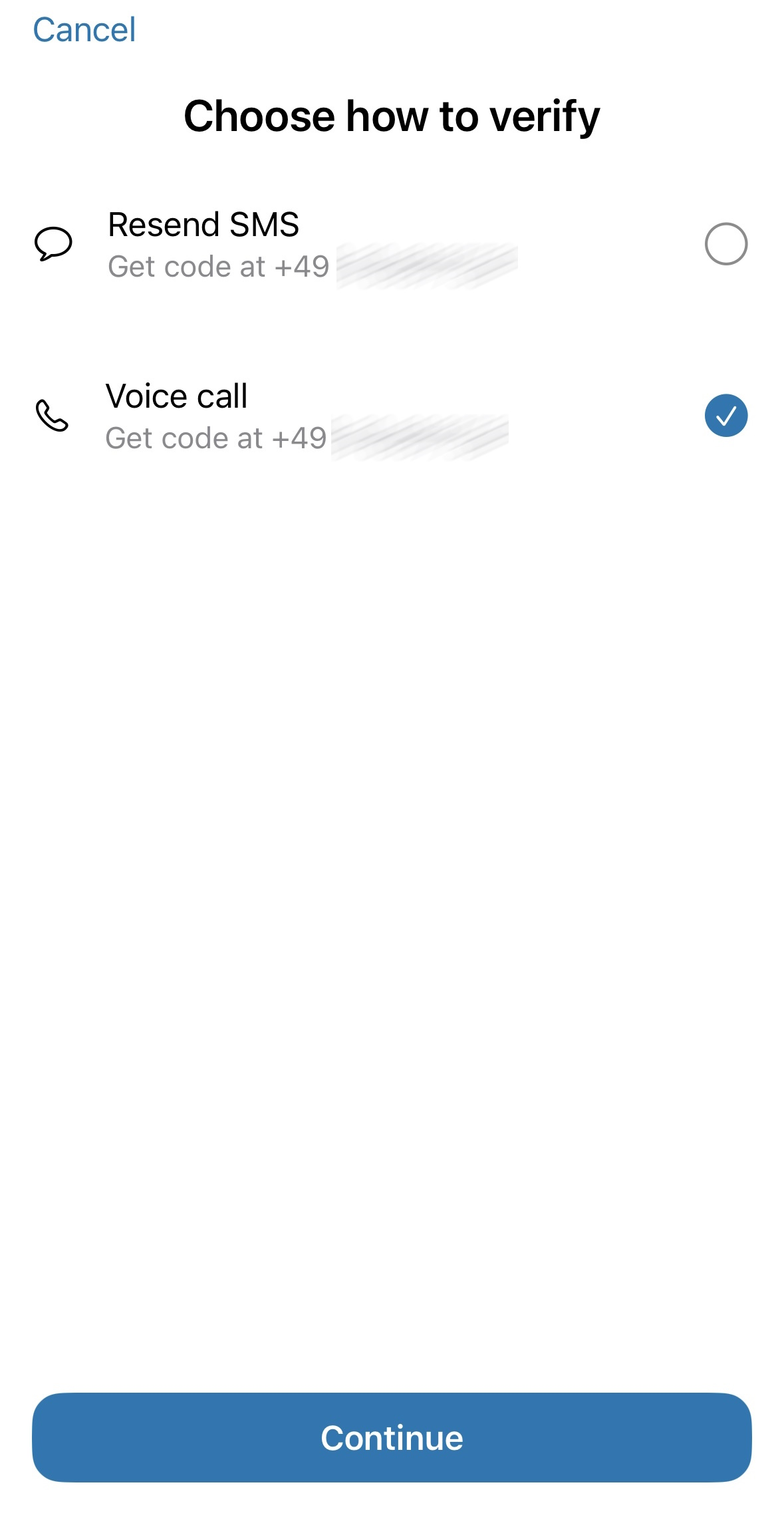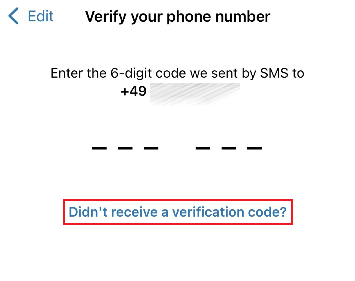 - Clique na opção “Não recebeu o código de verificação” e, em seguida, escolha a opção de chamada de voz para receber o código de confirmação de seis dígitos.