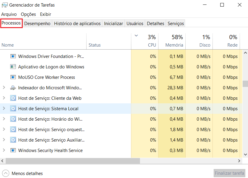 Limpar memória RAM pelo Gerenciador de Tarefas