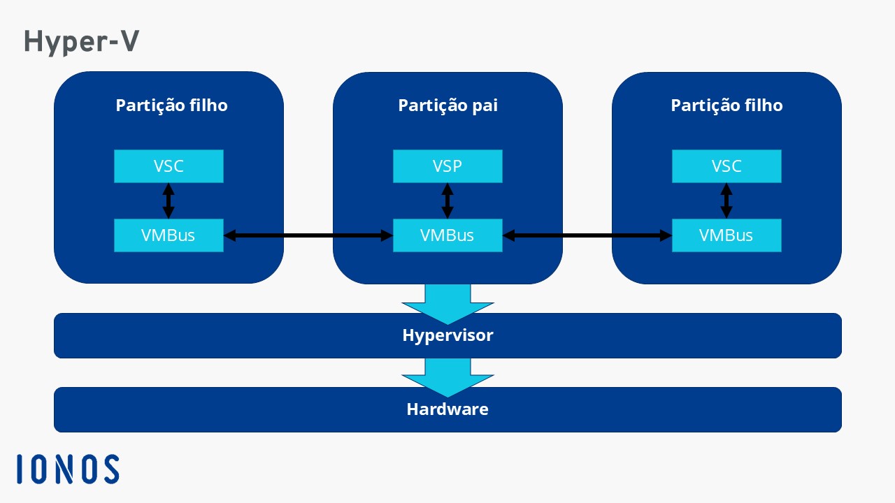 Nas partições, executam-se serviços que processam as solicitações e respostas transmitidas pelo VMBus. O sistema host roda o Virtualization Service Provider (VSP), enquanto as partições subordinadas executam os Virtualization Service Clients (VSC).
