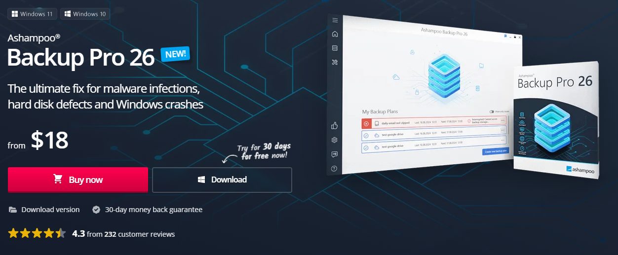 O Ashampoo Backup Pro 26 permite que usuários do sistema operacional Windows criem backups de arquivos e pastas individuais, ou de unidades inteiras, com facilidade e em tempo real. O programa de backup roda em segundo plano e, portanto, economiza recursos computacionais.