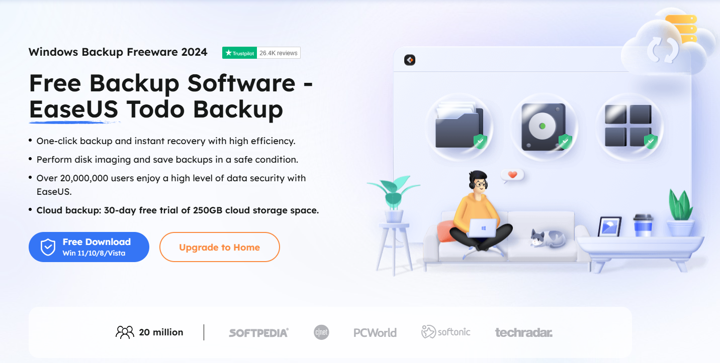 Com a ajuda de instruções passo a passo, é possível configurar backups de partições, arquivos e pastas individuais de forma confiável. Além disso, é possível economizar tempo e espaço de armazenamento ao salvar apenas as alterações feitas desde o último backup. A versão paga do software de backup inclui 1 TB de armazenamento em nuvem e permite transferir um sistema para outro hardware de PC. Por um pequeno custo adicional, o EaseUS Todo Backup Home pode ser adquirido com atualizações gratuitas incluídas.