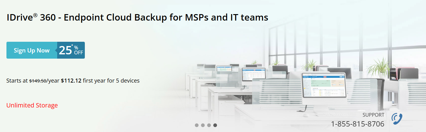 O iDrive, que suporta somente armazenamento em nuvem, pode ser utilizado por usuários Windows, macOS, Linux, iOS e Android. A grande vantagem deste software de backup é que o mesmo usuário pode utilizá-lo, simultaneamente, em diferentes dispositivos, como computadores, smartphones e tablets, sem a necessidade de assinar licenças adicionais. A licença é paga apenas uma vez, sem necessidade de assinaturas adicionais por dispositivo. Na versão gratuita, o iDrive disponibiliza 5 GB de espaço de armazenamento em nuvem, enquanto a versão paga oferece até 100 TB.