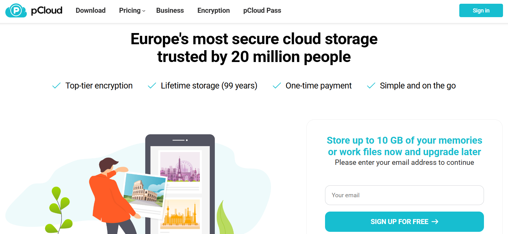 | pCloud | ✓ | AES-256-Bit | Luxemburgo | Plano vitalício para armazenamento permanente |