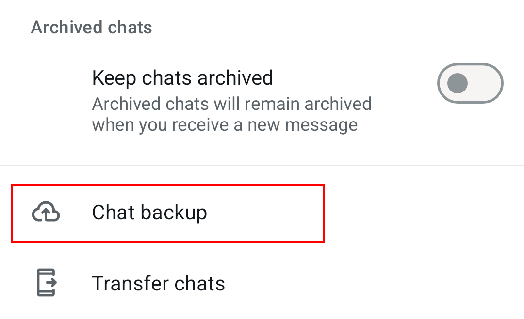 Passo 4: Vá até a seção “Backup de conversas”, em “Conversas”.