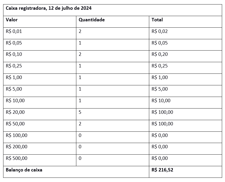 - No final, verifique se o saldo devedor corresponde ao valor real da contagem de caixa.
